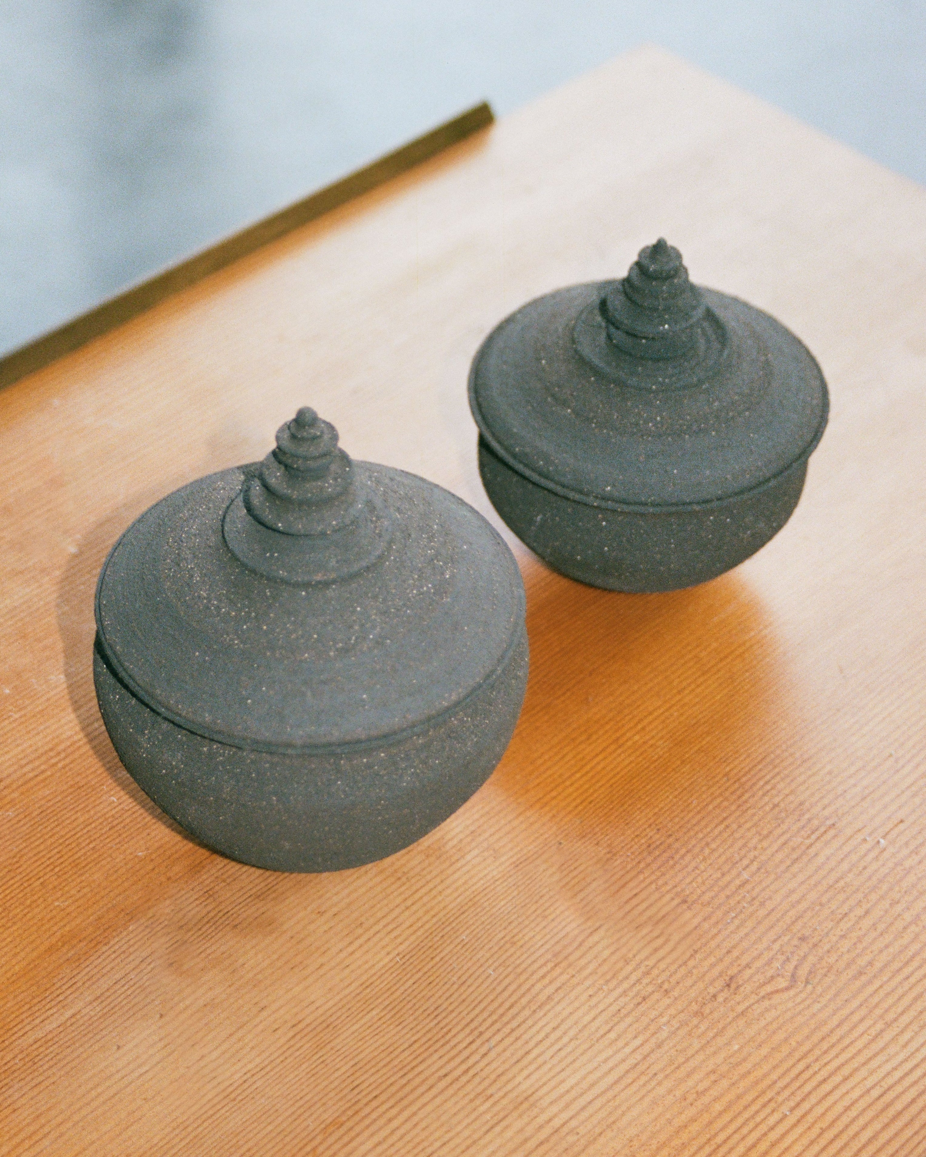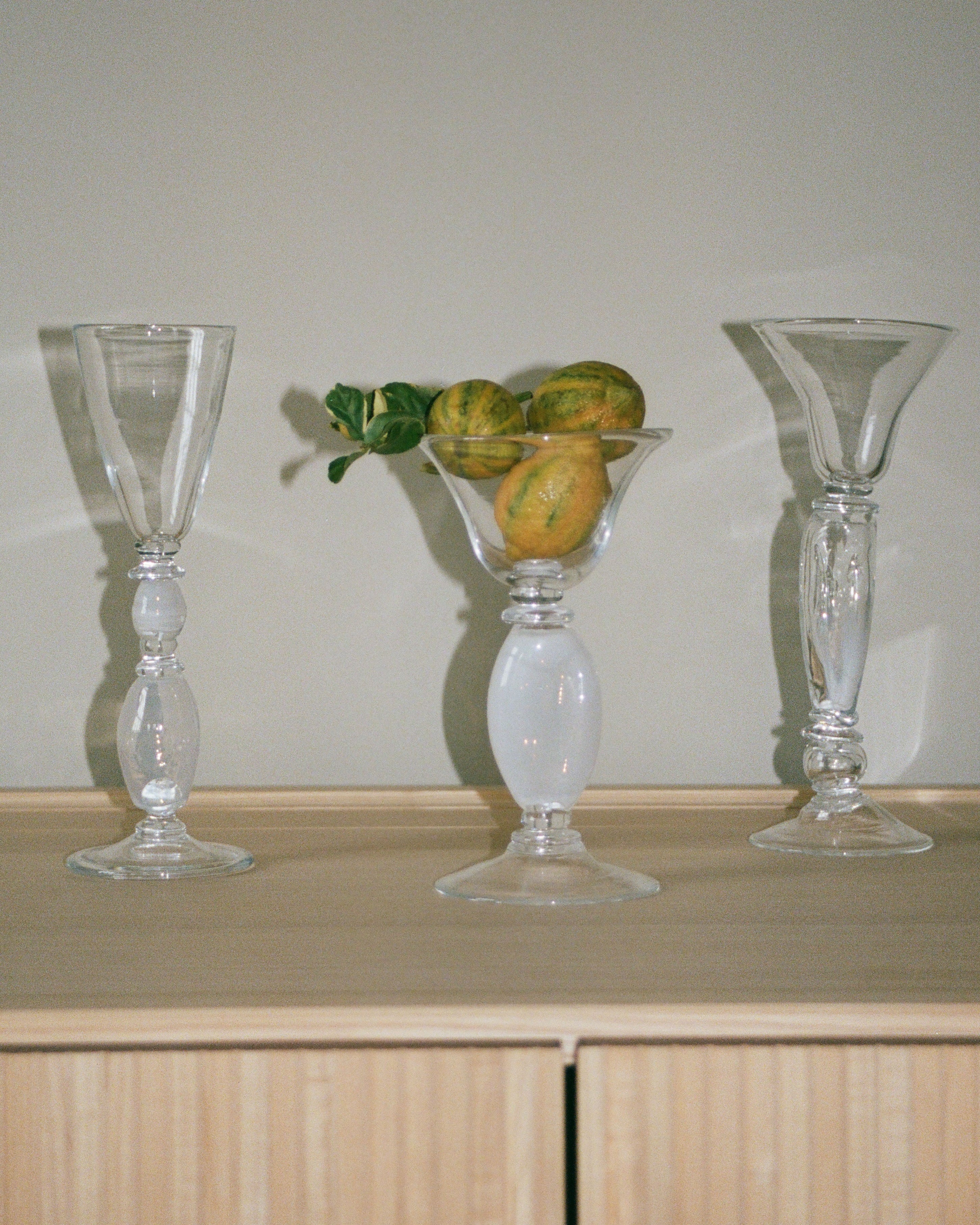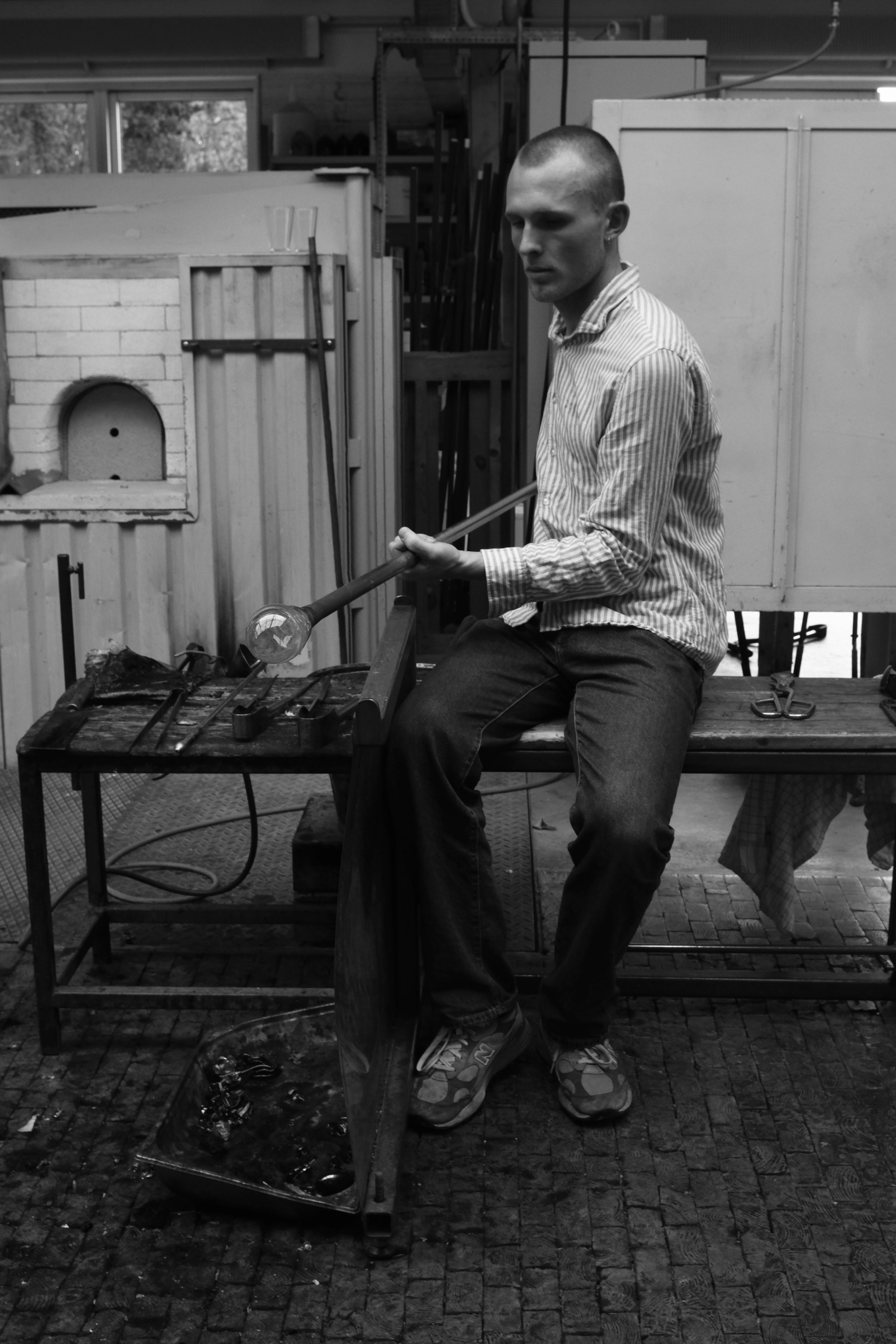 Working with molten glass as well as ceramics, he is attentive to process and material behaviour. References to historical glassmaking, from wood firing to traditional blowing techniques. Plants and flowers continue to inform his approach, where organic structures and composition remain present across materials.